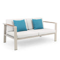 Con detalles de madera teca en los reposabrazos, se obtiene una apariencia cálida que balancea la frialdad del metal. Sus suaves y aireados cojines crean una experiencia más agradable al aire libre.