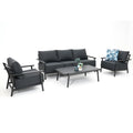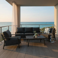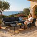 Disfruta del aire libre con esta moderna y resistente sala para exterior, diseñada para ofrecer comodidad y durabilidad en cualquier entorno exterior. Su estructura de aluminio proporciona una base sólida, ligera y resistente a la corrosión, ideal para enfrentar la exposición continua al sol, la lluvia y la humedad sin perder su forma ni apariencia.