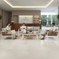 Los asientos incluyen cojines acolchados con espuma de alta densidad y telas impermeables de alta calidad, resistentes a los rayos UV y fáciles de limpiar, garantizando comodidad y larga duración incluso en condiciones exteriores exigentes.